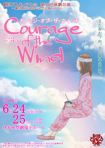 劇団どんちょうの会 第57回演劇公演 〜劇団創立30周年記念公演vol.1〜 『カレッジ・オブ・ザ・ウインド』 作 /成井 豊 演出/伊藤正裕 主催/劇団どんちょうの会 共催/公益財団法人 登米文化振興財団 ◆公演日程 2016年6月24日(金)@19:00 6月25日(土)A14:00 6月25日(土)B19:00 (開場は開演の30分前) ◆入場料金 一般/1,500円 高校生以下/500円 (※当日券は200円増) ◆会場 登米祝祭劇場 小ホール |